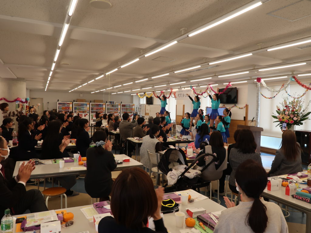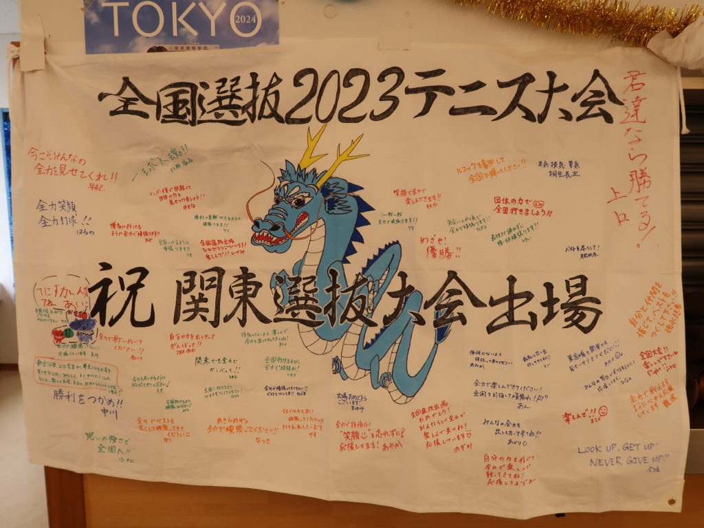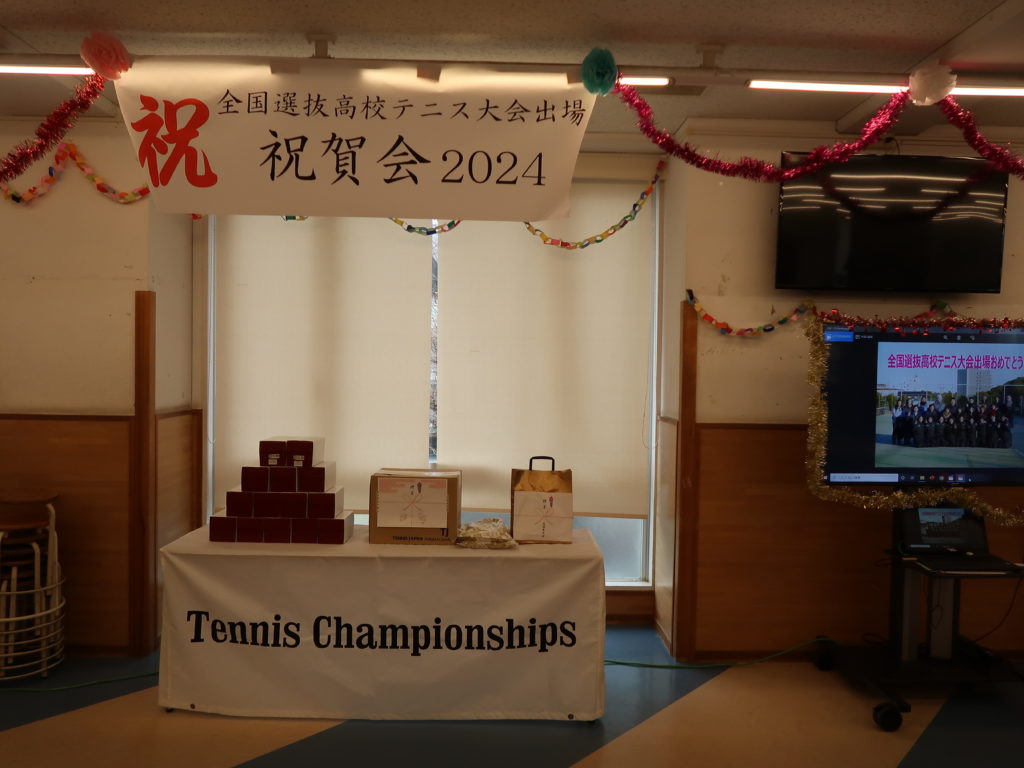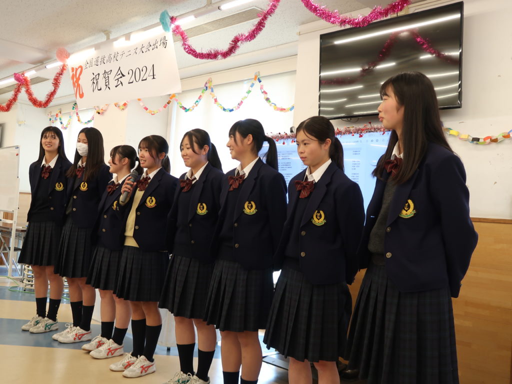 2024年2月4日(日)12時~14時、学校食堂で女子テニス部父母会&庭球東京会主催による「第46回全国選抜出場祝賀会」が開催されました。来賓8名、OG22名、保護者15名、部員24名、スタッフ5名、総勢74名による盛大な祝賀会でした。