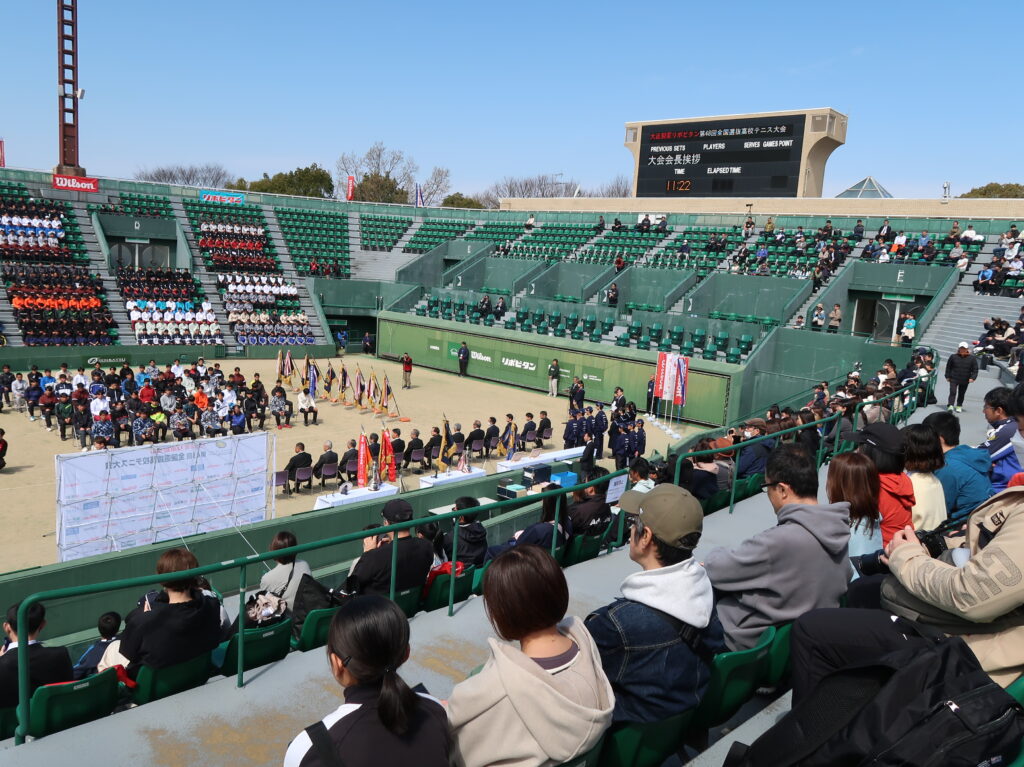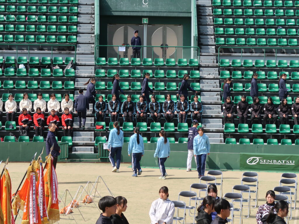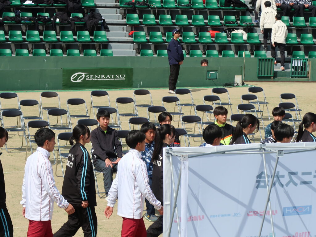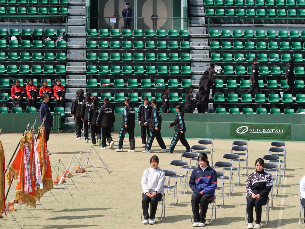 2026全国選抜高校テニス大会 監督 2026年3月19日(木)~3月26日(木)まで、福岡県博多の森競技場で第48回全国選抜高校テニス大会が行われました。3月20日は開会式、3月21日から団体戦が始まり、3月24日からはNO.1選手による個人戦も始まりました。東京高校は、この大会に3年連続5回目の出場となりました。 【団体戦】1回戦 愛媛県代表 済美高校S1 岡部 76(3)D1久保田・本田 63S2川島 60D2菊池・稲本 63S3本間 75で、5勝。 2回戦 徳島県代表 徳島市立高校S1 岡部 46D1久保田・本田 62S2川島 64D2菊池・稲本 63S3本間 60で、4勝1敗。 3 回戦 沖縄県代表 沖縄尚学高校S1 岡部 58D1久保田・川島 38S2本間 84D2本田・稲本 68S3菊池 打ち切りで、1勝3敗。 3年連続ベスト16でしたが、良く頑張りました! 【個人戦】団体戦NO.1選手によるUSオープンジュニア出場権獲得戦です。 東京高校 岡部桃華選手(1年) 4回戦 8-6 県立岐阜商業高校・木村選手5回戦 8-3 宮崎商業高校・田嶋選手6回戦 9-7 福徳学院高校・坪井選手準々決勝 1-8 沖縄尚学高校・伊東選手テニス部初の全国5位の偉業を達成しました!! 菊池さんお父さんが撮ってくれました写真です!