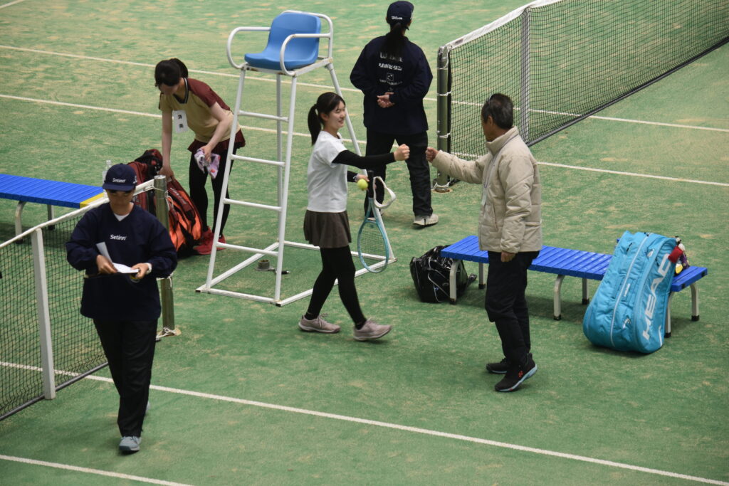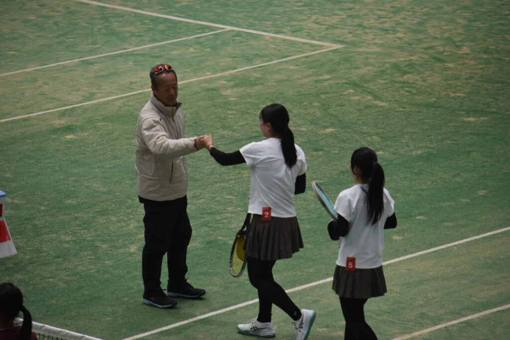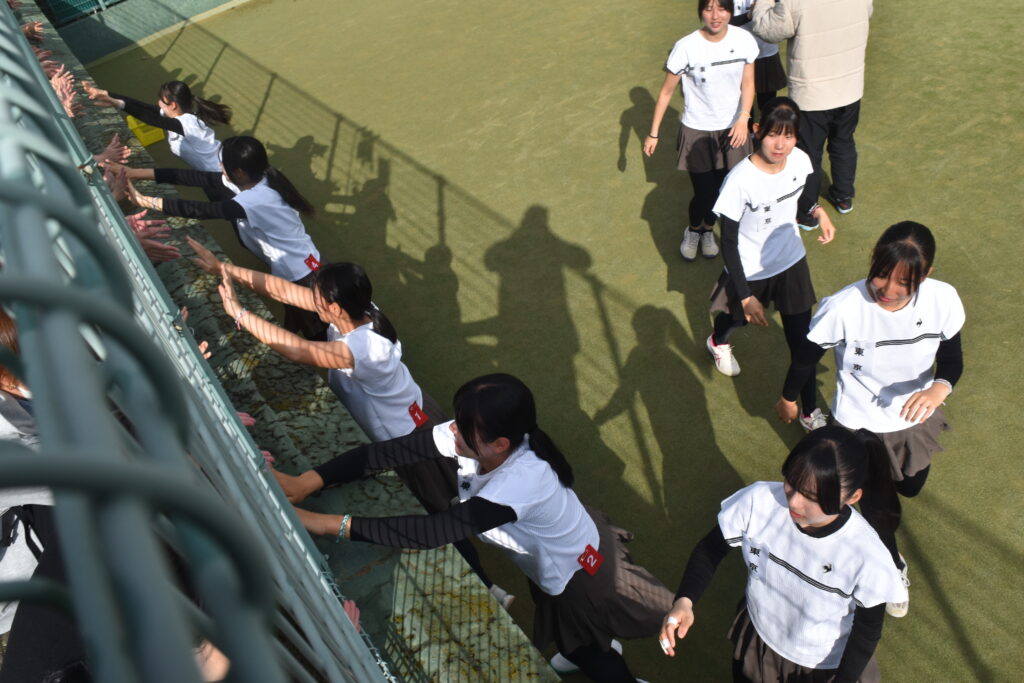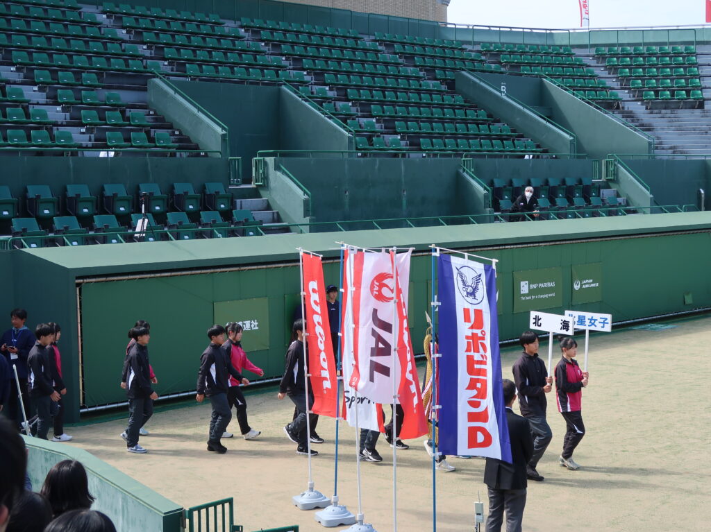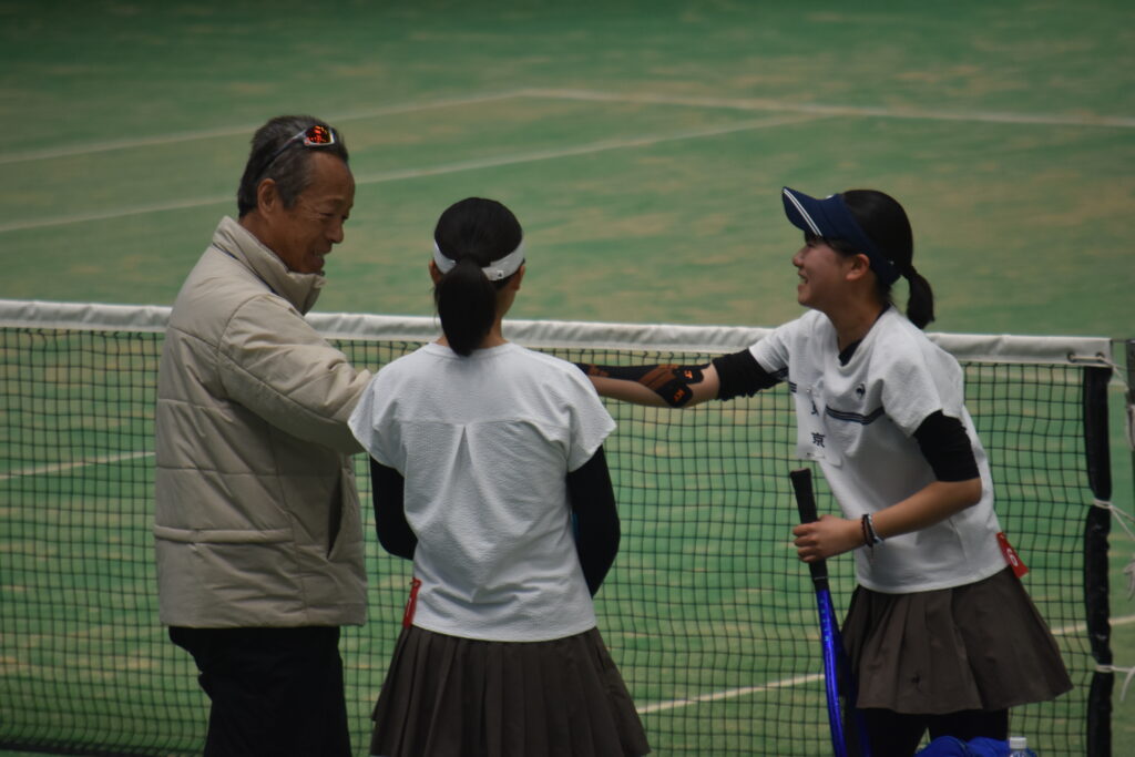 2026全国選抜高校テニス大会 監督 2026年3月19日(木)~3月26日(木)まで、福岡県博多の森競技場で第48回全国選抜高校テニス大会が行われました。3月20日は開会式、3月21日から団体戦が始まり、3月24日からはNO.1選手による個人戦も始まりました。東京高校は、この大会に3年連続5回目の出場となりました。 【団体戦】1回戦 愛媛県代表 済美高校S1 岡部 76(3)D1久保田・本田 63S2川島 60D2菊池・稲本 63S3本間 75で、5勝。 2回戦 徳島県代表 徳島市立高校S1 岡部 46D1久保田・本田 62S2川島 64D2菊池・稲本 63S3本間 60で、4勝1敗。 3 回戦 沖縄県代表 沖縄尚学高校S1 岡部 58D1久保田・川島 38S2本間 84D2本田・稲本 68S3菊池 打ち切りで、1勝3敗。 3年連続ベスト16でしたが、良く頑張りました! 【個人戦】団体戦NO.1選手によるUSオープンジュニア出場権獲得戦です。 東京高校 岡部桃華選手(1年) 4回戦 8-6 県立岐阜商業高校・木村選手5回戦 8-3 宮崎商業高校・田嶋選手6回戦 9-7 福徳学院高校・坪井選手準々決勝 1-8 沖縄尚学高校・伊東選手テニス部初の全国5位の偉業を達成しました!! 菊池さんお父さんが撮ってくれました写真です!